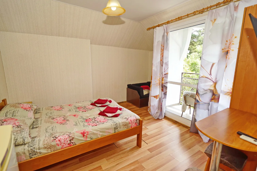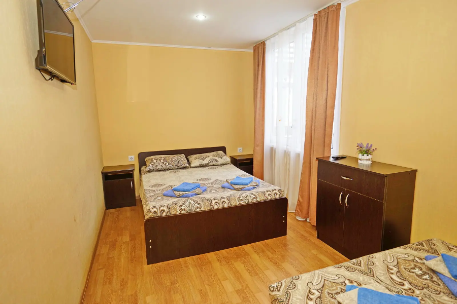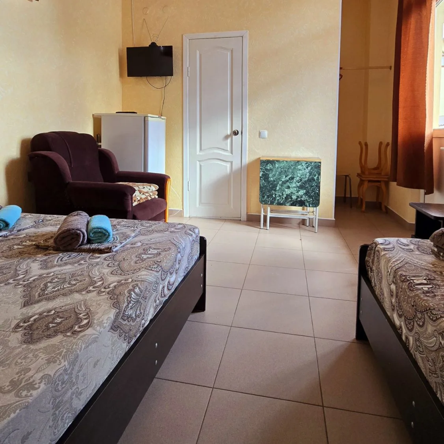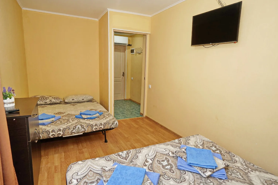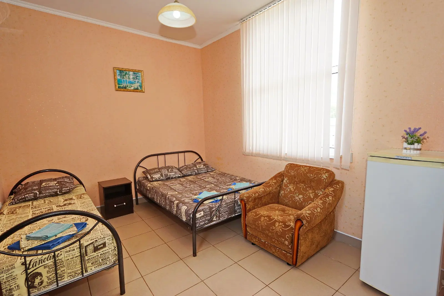 Номера категории стандарт 2х, 3х, 4х местные расположены с 1 по 3 этаж. Каждый номер оснащен всем необходимым: душ, туалет, тв, холодильник, сплит система, кровати, тумбочки, шкаф, стол, стулья. Поднимаясь на этаж, попадаете на общий балкон, с него вход в номера. На каждом этаже есть кухня: газовая плита, микроволновка, раковина, посуда для приготовления.