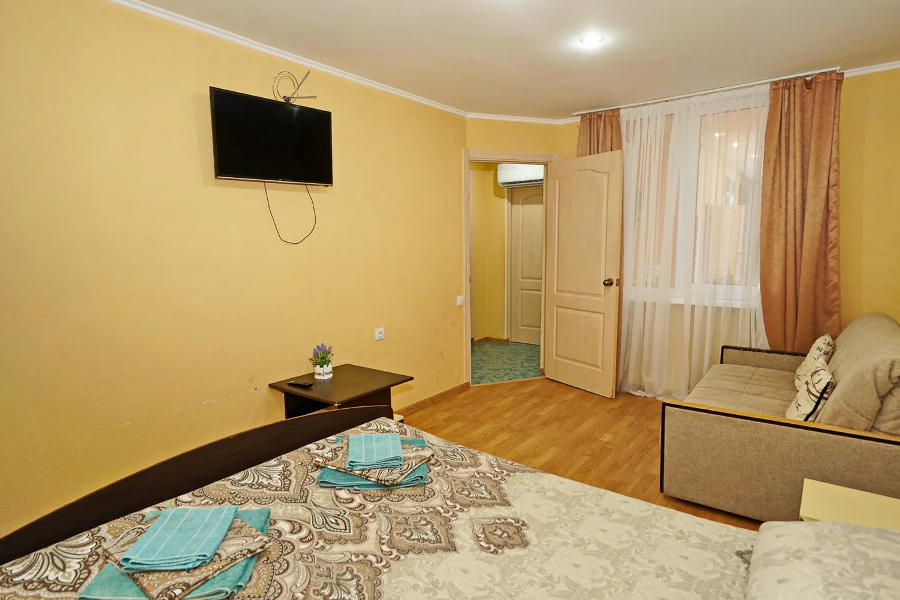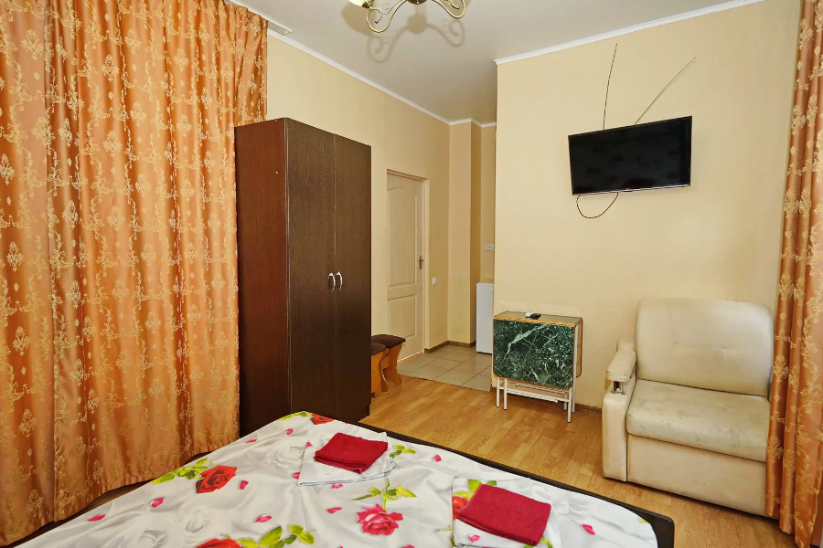 В номере: мебель, сплит-система, телевизор, спутниковое ТВ, Wi-Fi интернет, холодильник, кухня, туалет, душ.