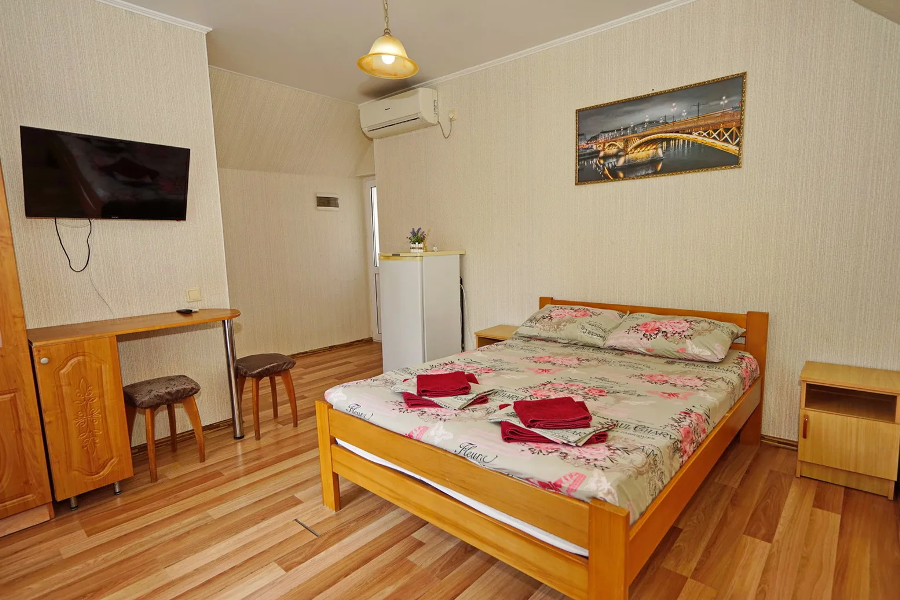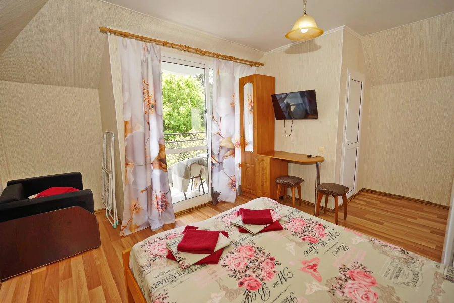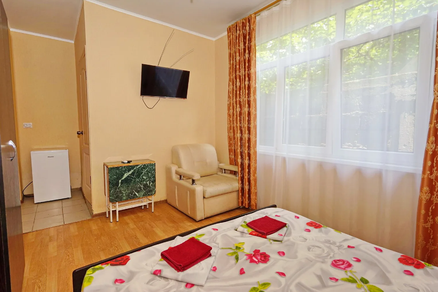 В номере: мебель, сплит-система, телевизор, спутниковое ТВ, Wi-Fi интернет, холодильник, балкон, туалет, душ.