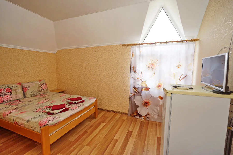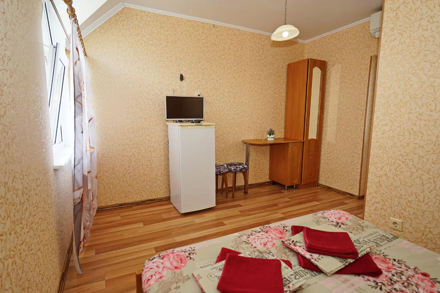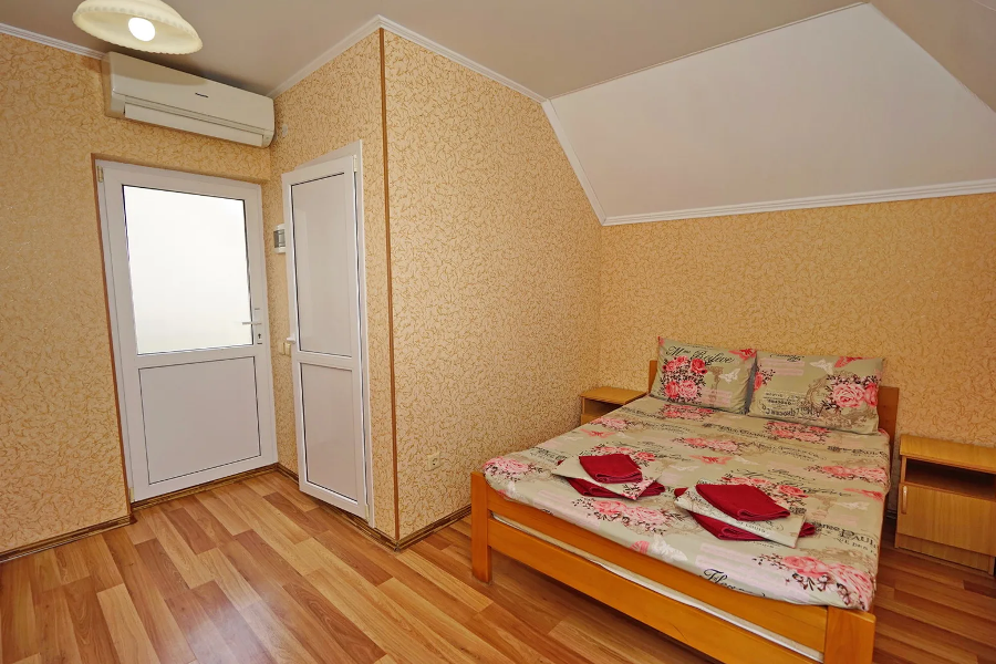 В доме: сплит система, ТВ, холодильник, посуда, кровати, шкаф, тумбочки. Санузел: в номере;