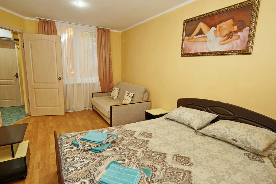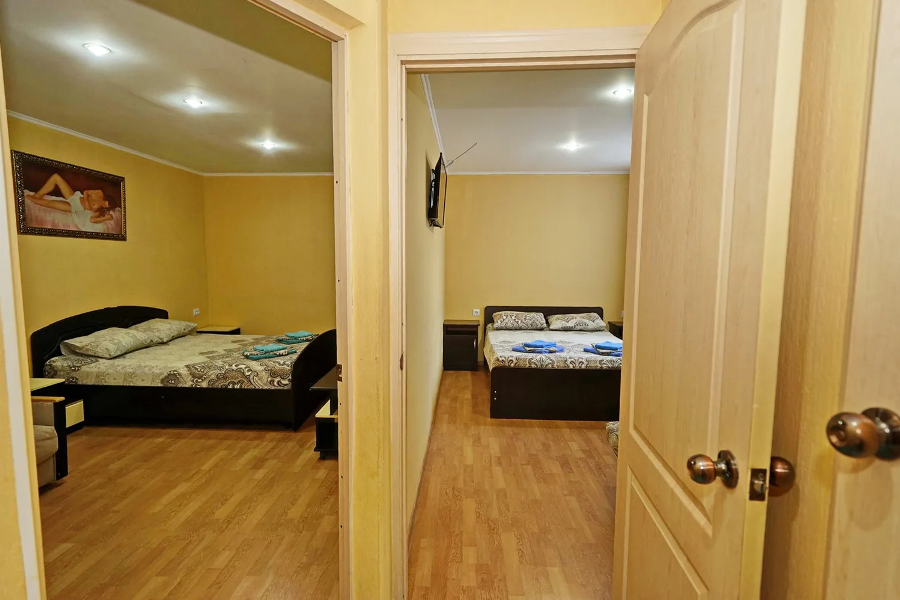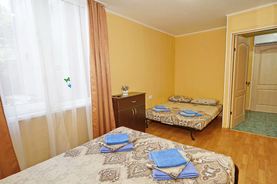 Для больших компаний, мы предлагаем двухкомнатный номер на 5 человек, с отдельным входом или 2х комнатный дом на 8 человек с личным двором, кухней, стиральной машиной.